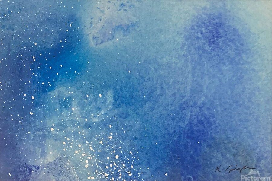 "Sky" is one of 3 watercolour paintings with splashes of pigment ink, all completed at the same time, all sky-like images.