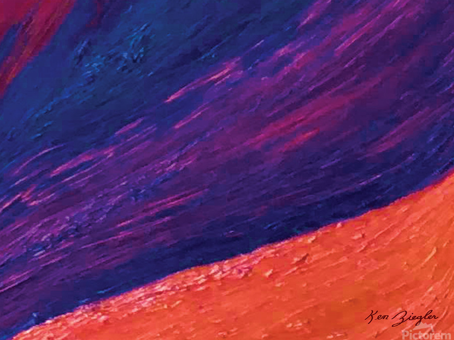 - textured oil landscape from another realm, created by rolling a small brush in pigment, pulling across the canvas, building layers in the process......[+]